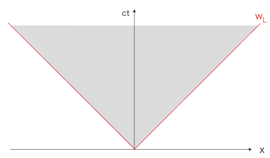実際,「いま・ここ」に届いている光を発した物質は曾てこの円錐面上に存在したものであり,曾てこの円錐面上に存在した物質が「いま・ここ」から見えている。