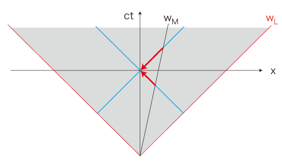 ──そこで,光円錐の面の傾きが1になる。