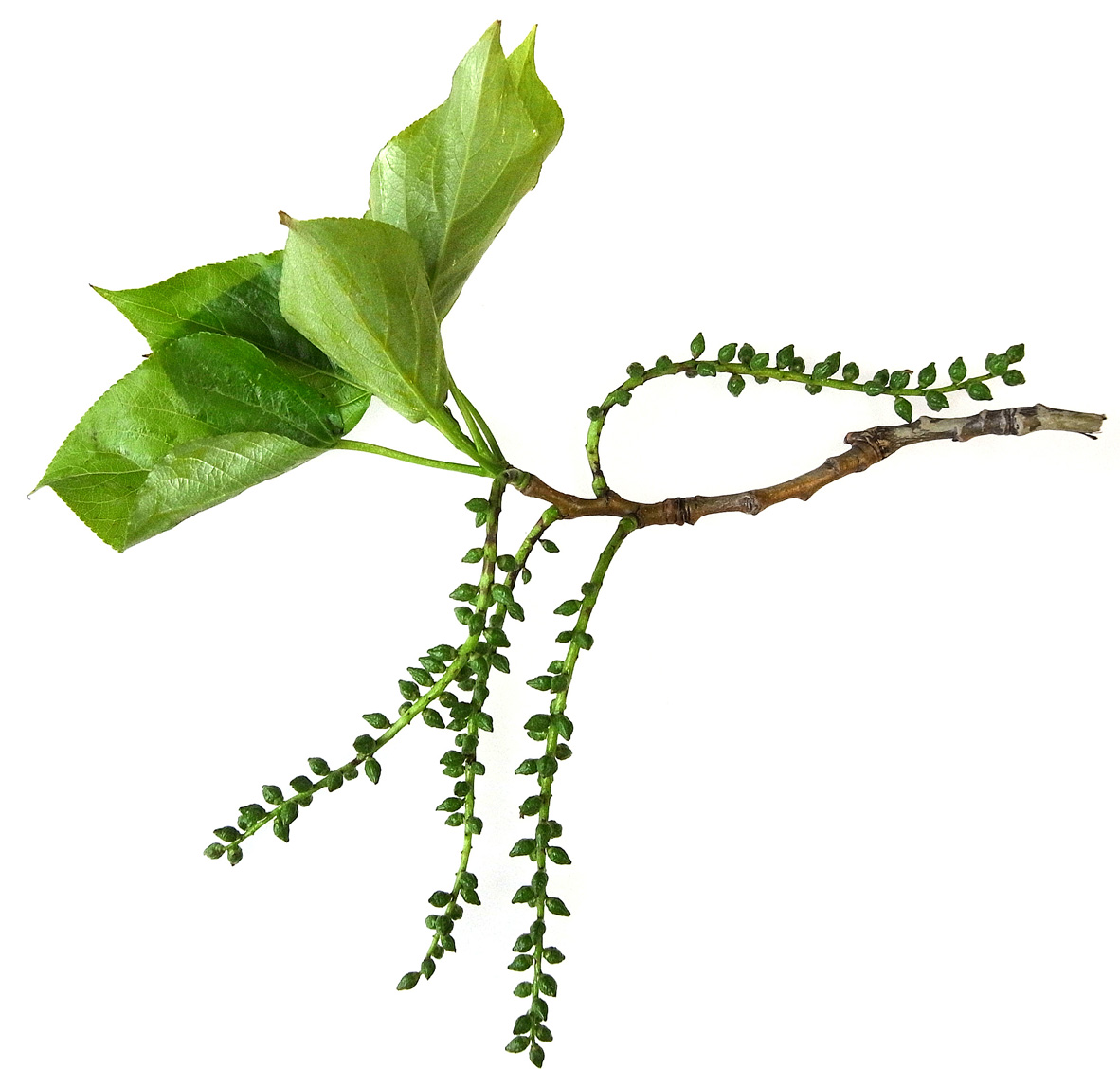 果穂のついた枝──木の上方の枝先 (強風による落枝としてゲット)