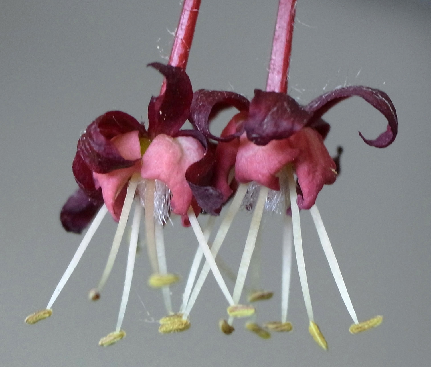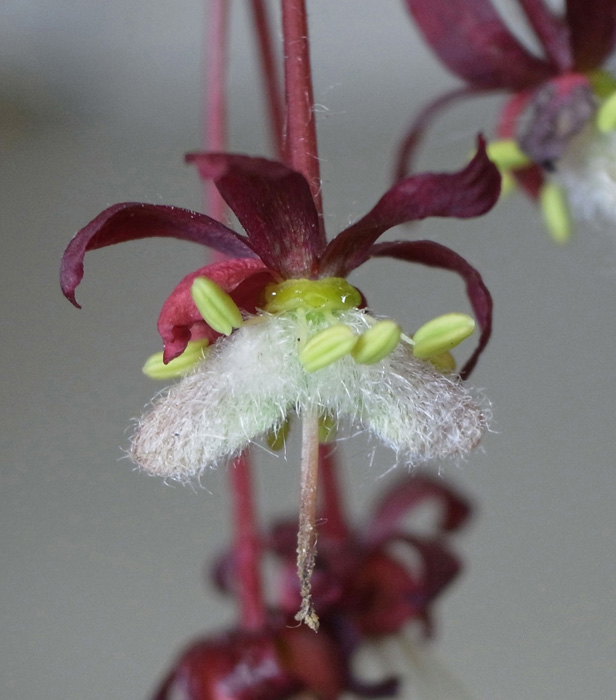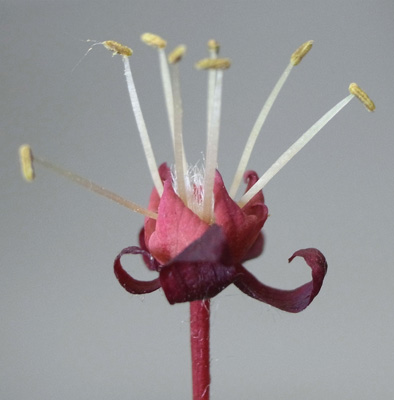 雄花 : 長い花糸をもつ雄しべが8本あり,雌しべがない