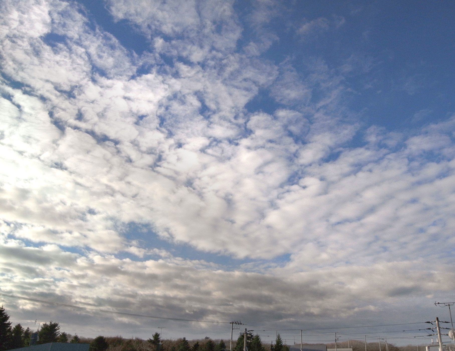 高層雲が広がり,その下の層積雲がちぎれ雲ふうになる