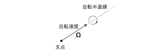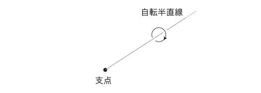 コマの運動は,「自転」である。 英語で言うと, "spin"。 固有の運動として考えるものである。 自転は,半直線の運動に還元される。 半直線の端点が「自転の支点」というわけである。 ![]()