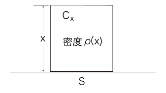 単位面積の地表の面 \( S \) と,\( S \) に鉛直な高さ \( x \) の空気コラム \( C_x \) を考える。