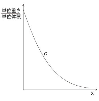 よって \( C_x \) の重さが,\( \rho(x) \ x \) 単位重さ。