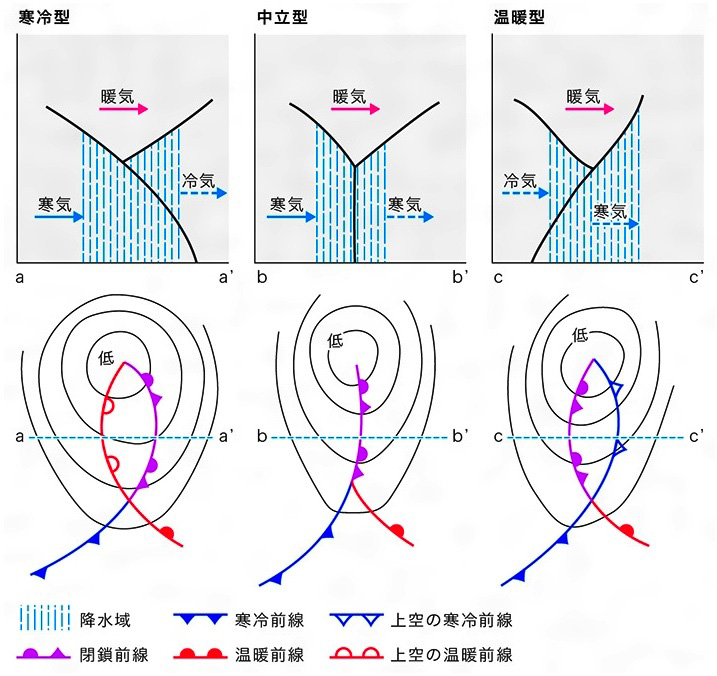 天気図に描かれた閉塞前線が寒冷型か温暖型かを見分ける方法: