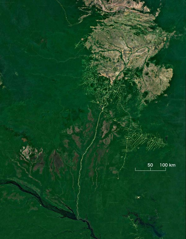 そしてこのときは,北の<地図で茶色の地域>から ネグロ川へと流れてくる ブランコ Branco 川 (「白い川」) も,考えに入れる必要がある。