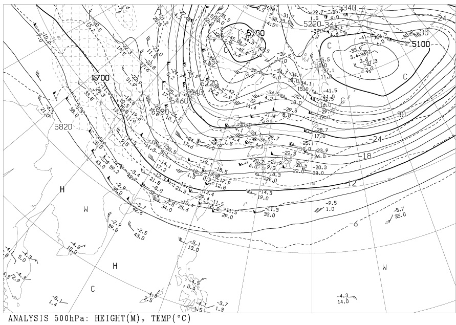 AUPQ 500hPa 天気図 (AUPQ35 の下図) の内容