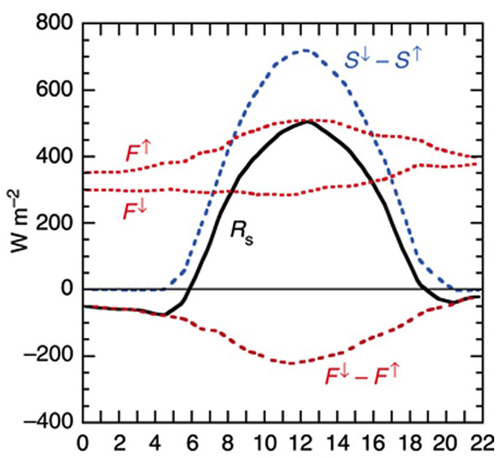 S | : | the upward flux of solar radiation at the surface |