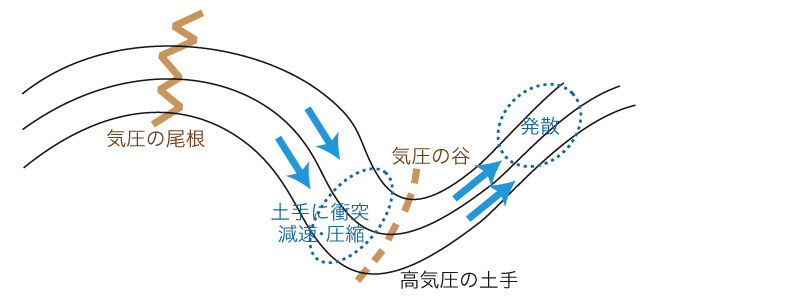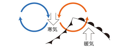 <発散>は,下方から空気を吸い上げる → 上昇気流 |