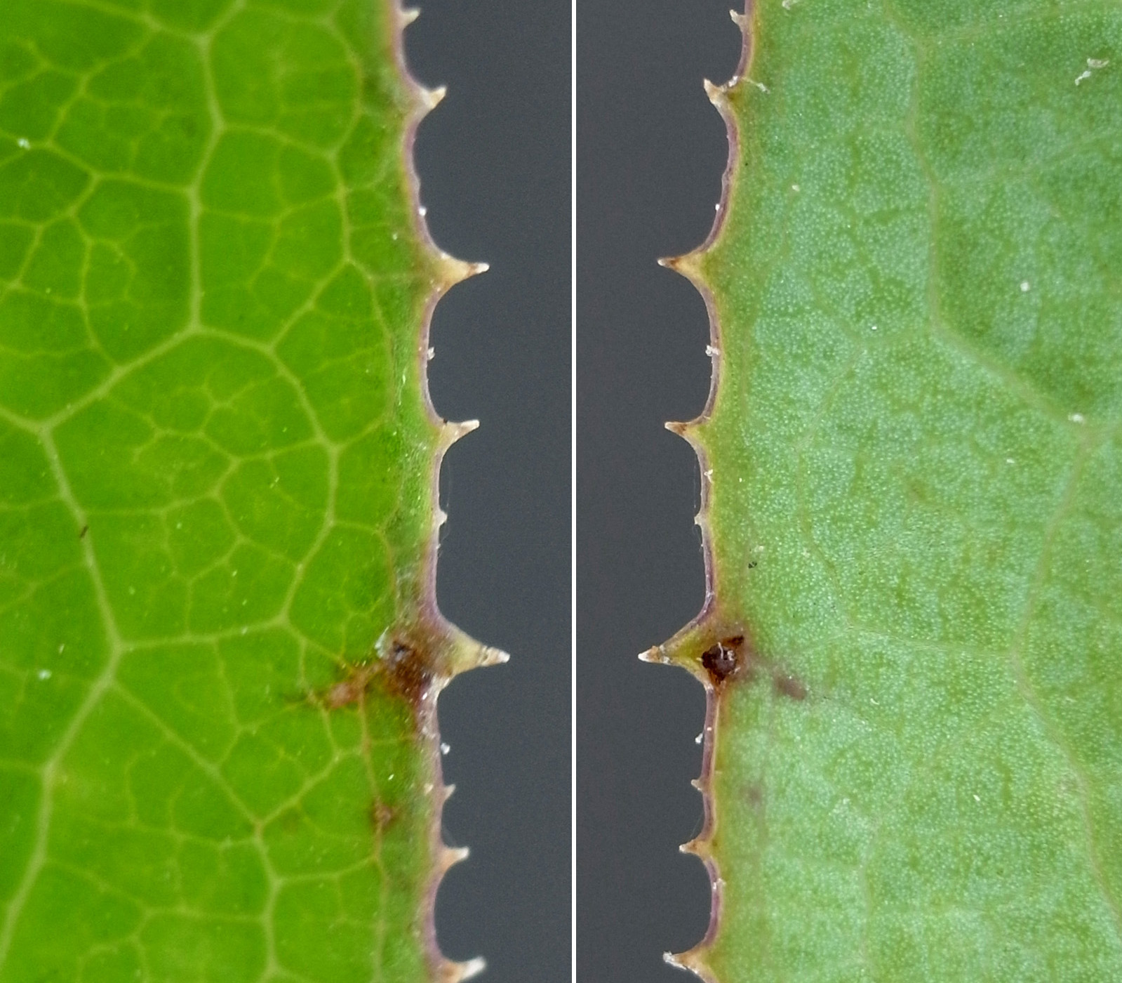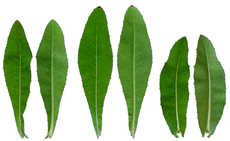 葉の形・大きさの変化──下から上へ (画像左から右へ)