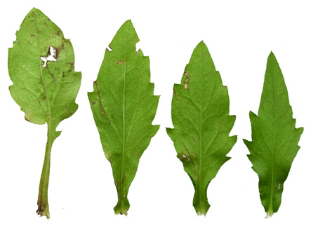 葉の形の変化 (根元から上方へ)